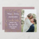 Elegant, chic och modern faux-tryckt löv för guld och guld för övertoning för ombre blommigt och penselskripttext på en mauve- och lilac-lila, glitter-the-Date-Spara-kort. Denna klassiska och sofistikerade utformning är perfekt för det trendig och det snyggt som gifter sig. Anpassa med ditt eget meddelande på framsidan och en anpassad inledande monogram på baksidan. All fotoutskriftsdesign.