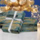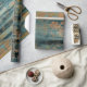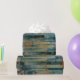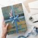 Guld Blommigt och Blue Rustic Wood Presentpapper