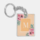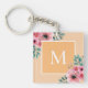 Gult bärnstensfärgad guld-monogramnyckelring med rosa och grönt vattenfärgsblommor. Söt, elegant och söt. Anpassa med start och bild. Underbar för Mors dag-gåva, födelsedagspresent eller gåva till lärare och kolleger.
