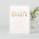 Guld Blommigt Baby Rosa Flickor Shower Inbjudan