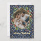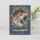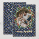 Elegant blått och guld anpassningsbar fotojulkort med kalligrafititel och med ett geometriskt foto ram med botaniskt andetag. Anpassa de här blå buffalo-korten med en bild och en familj namn.