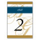 Den här designen har en elegant som ändå är enkel arrangemang av bridens och gruppens initialer i guld-skript. De blå accents som komplimenterar guld och skapar ett vackert personlig-skript med monogramdesign. Den här blå och guld-designen är modern men behåller sin klassiska charm med användan för kalligrafi-skript. Kombinationen av färg skapar ett sofistikerat, trendig och chic stil. Utformning av bröllop-bordsnummer i elegant med modernt inslag. Den enkla uppställningen av typografin ge är ett distinkt stil. Det finns också möjlighet att matcha bröllopsinbjudningar och andra artiklar i kontorsartiklar. Om du vill placera om initialer klickar du på "anpassa den här mallen" och klickar sedan på alternativet grund "Vill du anpassa den här designen ännu mer? Redigera med Design Verktyg". Anpassa antalet och köp varje bord individuellt beroende på hur många bordsnummer du behöver.