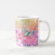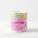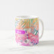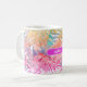 Guld Blue Teal & Rosa Tropical Löv, White Namn Kaffemugg