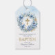 Guld & Blue Watercolor Blommigt Photo Boy Baptism Presentetikett
