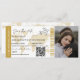 Guld-boardingkort bröllop spara datum biljett inbjudningar