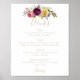 Denna menyskylt för drycker i den tropiska blommigten bröllop är perfekt för ett modernt bröllop. Utformningen har handmålade bruna fjädrar, boho-gult, vit, lila, rosa, , burgundblommor och blåbär som är snyggt placerade i vackra buketter.
