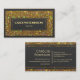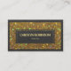 En elegant guld- bokehglitterbakgrund och med en svart läderlookhjälp som tillfogar förfining och som ska klassificeras till din visitkort. Notera: Detta är ett grafiktryck av konstverk och innehåller ingen smutsig glitter, sequins eller annan non tryckinslag (den ser endast verklig). För mer glitterlook besöker visitkortar GlitterBusinessCards.com eller Zazzle.com/GlitterBusinessCards
