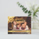 Ett rektangulärt foto av standardtyp fyller kortets framsida bakom guld och menyfliksområdet guld. Bandet Grund guld håller namn och julen hälsning i ett rött mörk och kommer att upprepas på baksidan. Du kan anpassa texten på baksidan och det finns utrymme för dig att lägga till en personlig anteckning som du själv skriver om du vill.