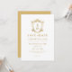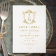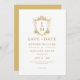 Meddela ditt bröllop-datum i stil med den här bedövande Spara datuminbjudan, som visar en lyxig vapensköld för guld vintage och anpassade bröllop initialer guld typografi, skapar det en perfekt förhandsvisning av din speciella dag.
