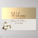 Välkomna era gäster med sofistikering och grace med vår eleganta bröllops välkomstaffisch. Skapad med modern flair, den minimala guld kalligrafin dansar över den rena duken, accentuerad av ömtåliga bomullsblommor. Enkelheten i designen talar volymer, och erbjuder en varm inbjudan till er fest, där varje detalj omfamnas med förfinad skönhet och tidlös stil.