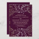 Brudslöjarepetition middaginbjudan med guld omkullkastar verkställer och plommonbakgrund