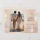 En modern elegant är utformad med vind+guld som blåste över handflatan löv mot en varm solfylld, blek färg bakgrund. Anpassa enkelt dina personliga val, inklusive ditt favoritfoto tillsammans med ditt monogram på baksidan. Perfekten boho sommar bröllop för varje varmt sjölandskap till havs.