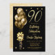 Elegant faux-ballonger med glitter-guld-ton med stor båge och remsor och accentstjärnor "90", inbjudan till 90:e födelsedagsfest firande.