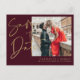 Guld burgunder skript foto bröllop spara datum meddelande vykort