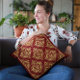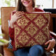 Guld & Burgundy Blommigt Damaskasker Geometric Mön Kudde