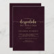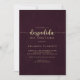 Det här burgundiska spanska inbjudningskort för möhippan i guld är perfekt för en rustisk möhippa. Den enkla utformningen och utformningen av eleganten har en skripttypografi av guld-typ och finare i maronbakgrund.