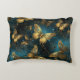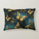 En elegantens accentkudde med en fjäril mönster i glittrande gyllene nyanser och glödande blues.
