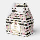 En söt toppen med en foto- och anpassningsbar-text omgiven av ett guld-accent och inställd mot en svart och vit rand-bakgrund accentuerad med guld-fjärilar, rosa ros och vita daisy. Perfekt för alla åldrar, möhippor eller babyduschar, bröllop, pension, årsdagar, studenten och annat.