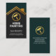 En faux guld tak överst avgränsar en övre grönt lagrar mot mörken grått lagrar under. Över överst finns en logotyp för färgpensel i guld som du kan använda följt av namn, ditt prestigefyllda namn och kontaktuppgifterna nära kortets bas.