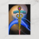 GULD CADUCEUS IN BLUE ROSA GULT FRACTAL SWIRLS VISITKORT