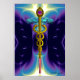 GULD CADUCEUS Medicinsk Symbol Lila Blå Vågor Poster