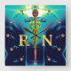 GULD CADUCEUS REGISTRERAD NURSE SYMBOL,Teal Blue Fyrkantig Klocka