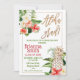 Guld Calligraphy Blommigt Luau Studenten bjudan Colorful tropical blommigt aloha grad studenten inbjudan med två vackra blommigtar för rött, vitt och grönt och faux guld kalligraphy heading.