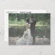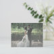 Den här eleganten tackkort har ett utfallsfoto med "tack" i faux guld-folie med kalligrafi tillsammans med namn och bröllop. Baksidan av det här postkortet har du gott om utrymme för skriva av ett personligt tackkort, tillsammans med linjer för utskicket till adress.