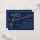 © Socialite Designs. Vår vackra kalligrafbekräftelseinbjudan har en duva, kor och vacker kalligrafitext i guld. Bakgrunden är marin blå. En underbar inbjudan som är könsneutral och kan användas för en pojke eller flicka. Byt enkelt ut vår malltext mot din egen. Alla designade inslag kan flyttat, ändras eller tas bort.