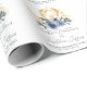 Den här bröllop-napkin har ett sagema med blåa blommor. Vattenfärgsblått ro och grönt accentuerar grund-hörnen. En guld Cinderella prinsessa-vagn placeras överst.