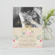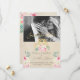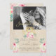 Den här anpassningsbarna sparar datumkortet med ett sagematod i bröllop med en papper bakgrund för parkering och vita och rosa blommor. Vattenfärgen vit ros och rosa pekar ut grund. En guld Cinderella prinsessa-vagn placeras i mitten. Ett foto placeras överst som du kan ersätta med ett eget foto.