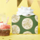 Intrikera guld och vitt keltiskt hundar i mönster i skivform på gröntens bakgrund.
