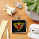 GULD CELTISKT HJÄRTA SMYCKEN MED RÖD RUBIN ÄDELSTE FYRKANTIG SILVERFÄRGAD NYCKELRING