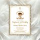 Upptäck den perfekta blandningen av tradition och elegans med vår exklusiva dop- och födelsedagsinbjudan i guldcharro-stil. Med en charmig baby-charro och ett praktfullt guldkors mot en lugn vit och guld bakgrund, lovar denna inbjudan en fest som är lika unik som dina älskade minnen. Omfamna sofistikering med varje detalj noggrant utformad för en minnesvärd händelse. Personifiera din idag och gör ett statement med stil och grace!