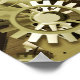 En gyllene mekanisk samling av groddar och växlar från insidan av ett låsverk.