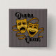 Vektorillustration av komedi och tragedismasker i guld med guld-ribbon och Drama Queen-text. Underbar gåva till medlemmar av dramatisk klubb. Perfekt för dramadrottningar. Märkre: skådespelare, biograf, komedi, drama, drottning, film, frost, sorg, lycklig, humor, glädje, skratt, mask, film, film, föreställning, ledsen, teater, tragedi, leende, teater, middag, levande, guld, metall