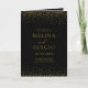 Kompilera din klassiska bröllop-händelse med det här guld-konetti boho-färgade bröllopsprogrammet. Utformningen har vattenfärgen guld glitter, konfetti i svart bakgrund.