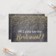 Vad är det för bättre sätt att be dina flickvänner att bli din brudgummi? Guld glitter konetti/punkter på båda sidor med krittypsteckensnitt med en kritbakgrund. "Kommer du att bli min Bridesmaid?" Baksidan har namn och "det kommer att elak världen till mig om du säger ja!" Anpassa till namn och bröllop om du vill göra din förfrågan av något slag. Matching Maid of honor, Matron of Honor, Jr. Bridesmaid, Bridesmaid Cards m.fl. finns tillgängliga. Om du inte ser vad du vill ha, släpp oss en linje och gör en åt dig
