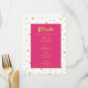 Middagsmenyn i bröllop i Fuchsia shock rosa och vit med guld konetti mönster och handskriven stil-text, anpassade med dina uppgifter och tillgänglig i matchande bröllop-produkter.