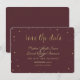 Bara royalets elegans: "spara datumet" faux-guld-filmskript, med två hjärtan, faux-guld-folie konetti på burgundy-/champagnebakgrunden. Använda Anpassa det verktyg om du vill lägga till all nödvändig information. Du kan ändra storlek, teckensnitt, färg och ordalydelse. Mer information finns i min Guld Confetti Burgundy/Champagne Bröllop Collection.