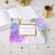Guld glitter konetti-prickar och blått och lila vattenfärgade blommor vintage bröllop gäst bok