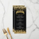 En svart bakgrund i riken visar på en gnistrande gyllene tiara med faux guld-konfetti som regnar uppifrån på detta menykort för att samlas upp på grund. Gör ett menykort för perfekt för det blingista Quinceanera firande någonsin! Detta kan också anpassas för alla mousserande flickors födelsedag eller andra firande. Tillgängligt med matchande produkter.