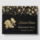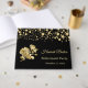 Golden-effekt-konfetti och engelska ro på svart bakgrund Pension Party Guest Bok. Bakgrunden till färg kan ändras