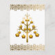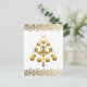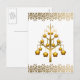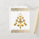 Ett modernt julvykort med ett gyllene Julgran omgivet av en guld-snöflinga gräns.