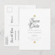 Detta eleganta spara-datum-kort har guld-cupider ovanför och under dina detaljer för spara-datum i klassisk elegant typografi. Baksidan har ytterligare detaljer för spara-datum, inklusive din bröllopswebbplats, med din returadress och utrymme för din mottagares adress.