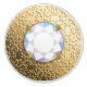 En trompe-l'oeil, 3-d "diamant"-em på en metallisk, fuktig, mönstrad bakgrund i guld - blandad digital konst