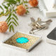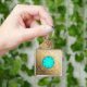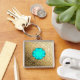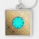 Guld Damask med faux aquamarine gemstone Fyrkantig Silverfärgad Nyckelring