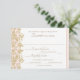 Guld-mössan Vinstockas blommigt rosa och guld bröllopssvarkort för att komplimentera vår bröllopsinbjudan. Vintage Glam Romantic-svarskort med briden och brudgummens namn och bröllop på baksidan.