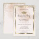 Gyllene glitterexamen mössa, och guld diamanter på en akvarell stänk bakgrund.