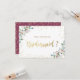 Guld Diamonds Burgundy Flowers Bridesmaid Card Inbjudningar